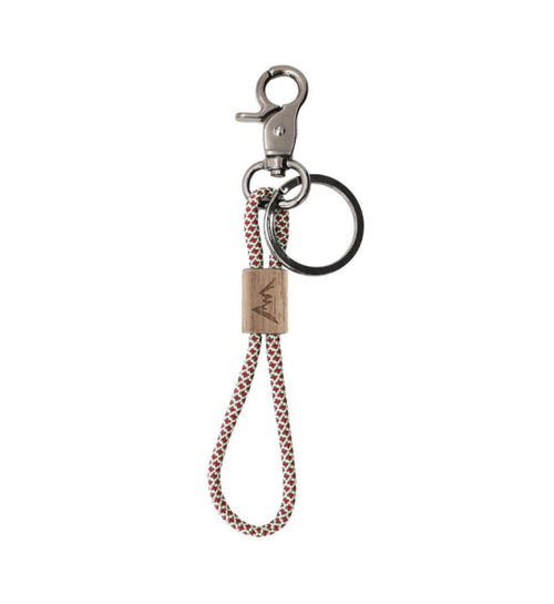 Dieser Schlüsselanhänger aus Nussholz und Paracord bringt die Berge an deinen Schlüsselbund. Für Wanderer und Kletterer.