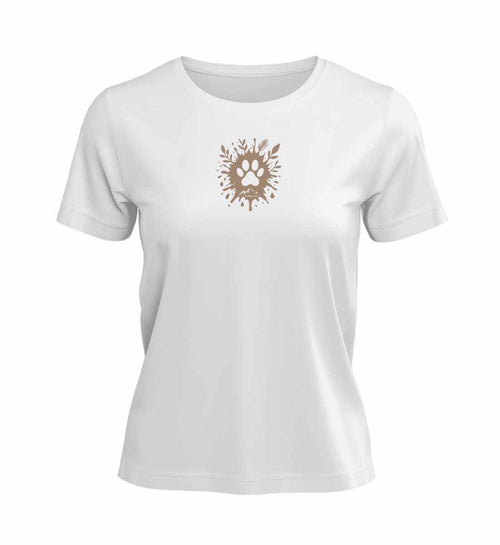 Spuren im Herz. Die Hundepfote ist das Symbol für treue Begleiter. Ein T-Shirt Pfote Damen.