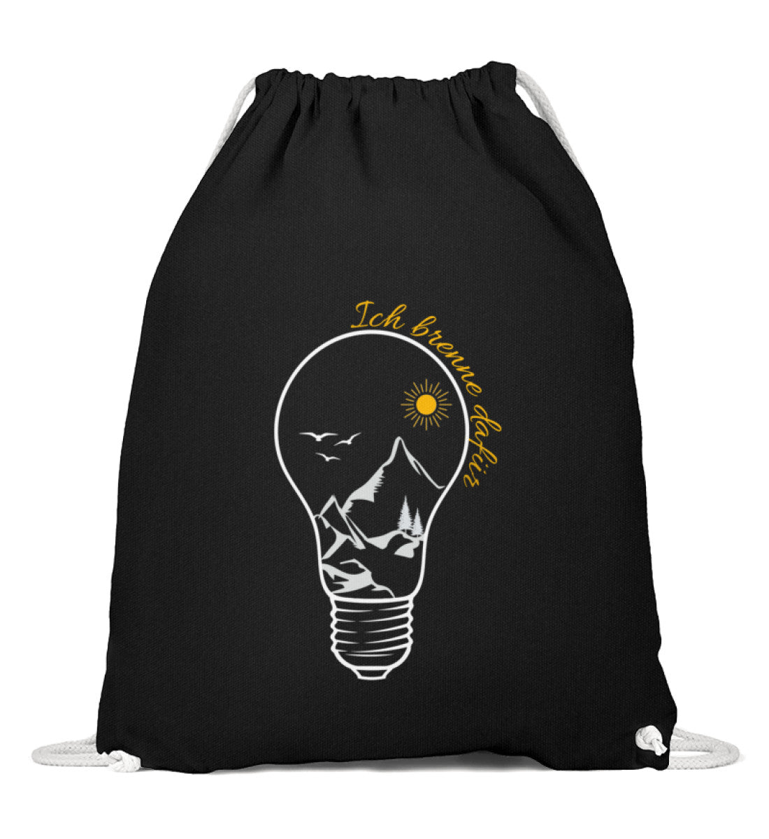Dieser Turnbeutel mit Motiv präsentiert das Design Ich brenne dafür. Er richtet sich an Zielgruppen mit Interesse an Wandern und Berge. Das Produkt ist eine relevante Ergänzung für die Suche nach einem nachhaltigen Gymsac.