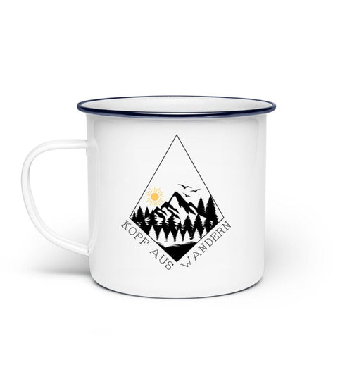 Dieser Emaille Becher mit der Botschaft Kopf aus ist dein Tool für Entspannung. Für Achtsamkeit in der Natur. Ideal als Teetasse.