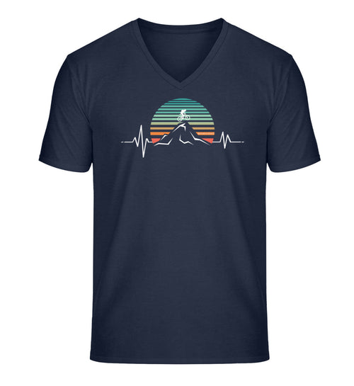 Puls am Anschlag. 'Mountainbike Herzschlag' zeigt, wofür du lebst. Ein emotionales MTB T-Shirt V-Ausschnitt.
