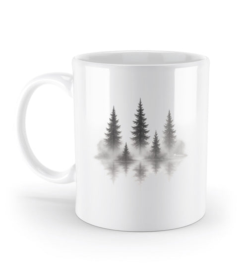 Diese Kaffeetasse mit Nebelwald-Design ist für Mystiker und Outdoor-Fans.