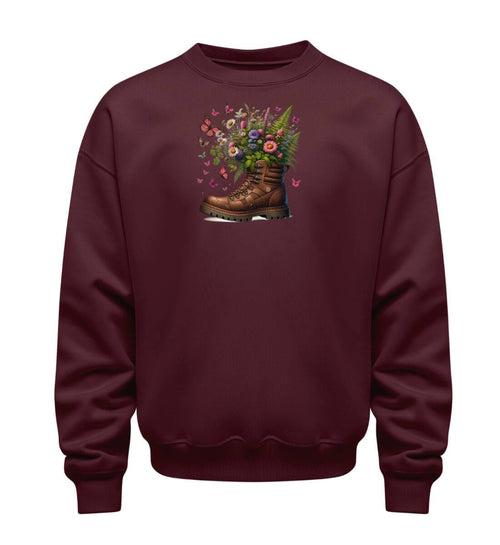 Blumenwiese zum Anziehen. Dieser Damen Pullover (Unisex-Schnitt) vereint Robustheit mit Zartheit. Er besteht aus 100 % Bio-Baumwolle (350 g/m²), ist vegan und fair produziert. Perfekt für kühle Frühlingstage.